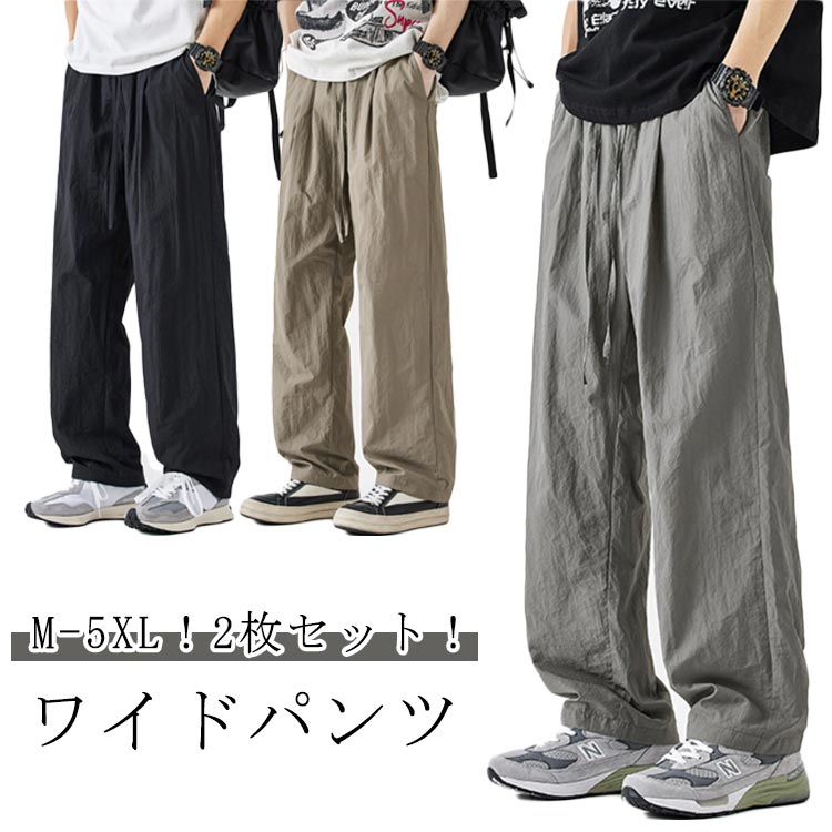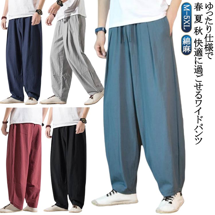 ワイドパンツ メンズ バギーパンツ 太め リラックス ロングパンツ カジュアルパンツ サルエルパンツ イージーパンツ 無地 薄手 ボトムス ウェストゴム オールシーズン 長ズボン 父の日 春 夏 秋 冬 送料無料