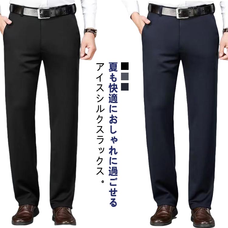 スラックス メンズ 接触冷感 アイスシルクパンツ 大きいサイズ 夏 ビジネスパンツ ノーアイロン ウォッシャブル ストレッチパンツ 涼しい 吸水速乾 チノパン 清涼 涼感 ズボン ゴルフパンツ アイスシルク ズボン 薄手 洗える 春夏 秋 フォーマル