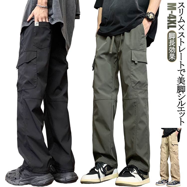 カーゴパンツメンズストレートスリムアメカジカジュアルワークパンツボトムス春秋美脚脚長効果大きいサイズ多ポケットスポーツ運動カジュアルパンツ登山ロングパンツ