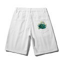 ・主な素材: ストレッチデニム (綿98%)・丈: ショート・カラー: ホワイト・サイズ展開: 28, 29, 30, 31, 32, 33, 34, 36, 38, 40・シルエット: ワイド・伸縮性: ややストレッチ・スタイル: 中華ストリート