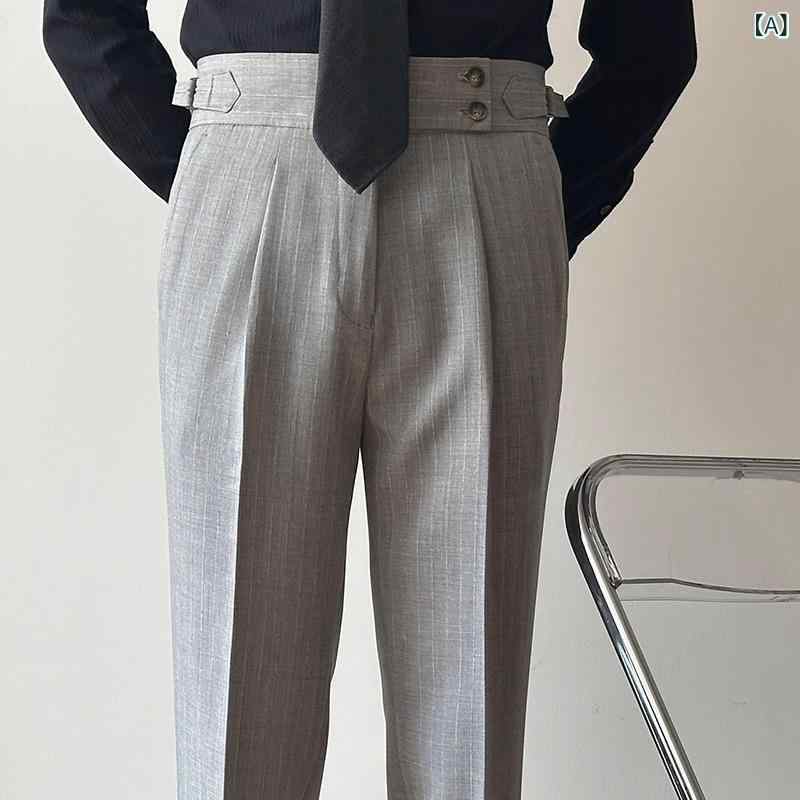 スラックス メンズ イタリアンナポリ風 ボトムス ビジネス カジュアル 細身 ハイウエスト ストレートパンツ ドレープ感 ポリエステル 通勤 オフィス シワになりにくい イージーケア デイリーユース オールシーズン 上品 グレー カーキ
