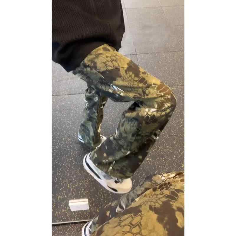 ジーンズ メンズ 男性用 迷彩 ヘビ柄 微フレア デニムパンツ 美脚 ロングパンツ ストレート ワークパンツ ミリタリー カーゴパンツ ブラック カーキグリーン