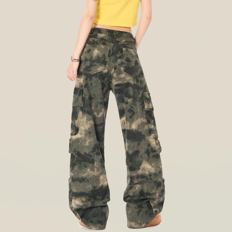カーゴパンツ 男性用 迷彩柄 ワイドレッグパンツ コットン100% ミリタリースタイル ストレート 厚手 多ポケット付き 四季 普段使い