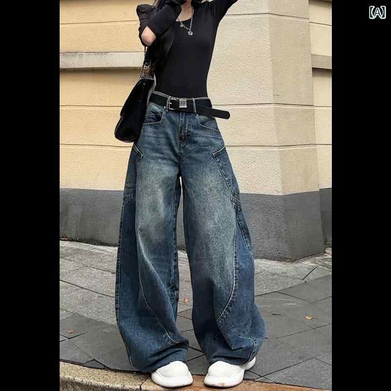 デニム メンズ パンツ アメリカン ワイドレッグ ジーンズ 春秋 ストレート パンツ レトロ ダメージ 加工 カジュアル パンツ