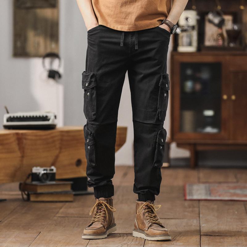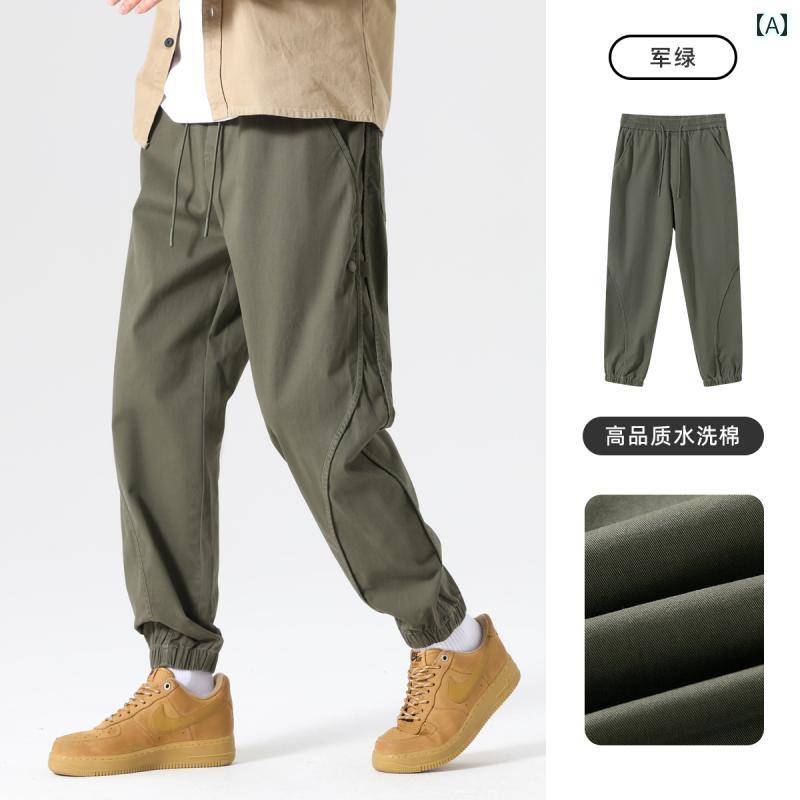 ・スタイル: 和風レトロ・カテゴリ: ワークカジュアルパンツ・タイプ: ワークパンツ・シルエット: ストレート・丈: フルレングス・ウエスト: ミドルライズ・フロント: ドローコード・厚さ: 薄手・柄: 無地・主な素材: 綿97.5%・着用シーン: カジュアル・裾: テーパード・加工: ノーアイロン加工・デザイン: マルチポケット・伸縮性: ややあり・機能: 通気性・性別: メンズ・対象: 若者・カラー展開: グレー、ブラック、カーキ、ミリタリーグリーン・サイズ展開: 29、30、31、32、33、34、36、38、40