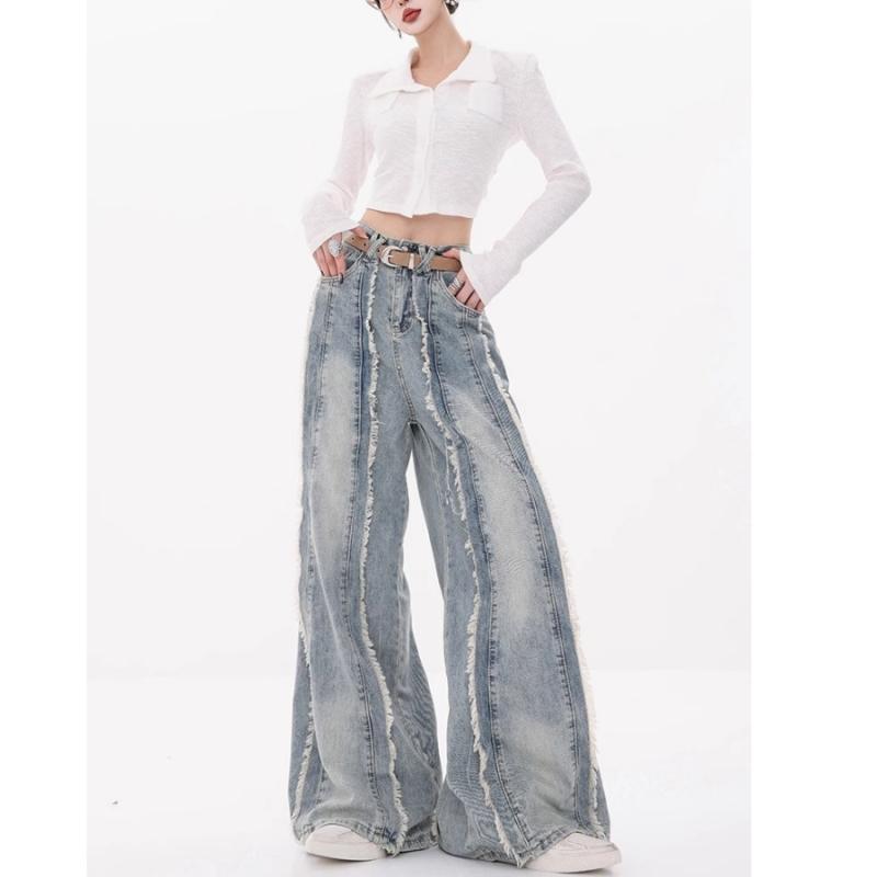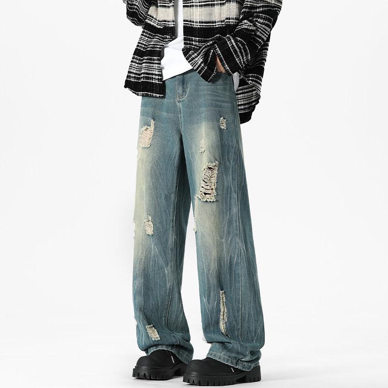 メンズ ファッション 服 男性用 オシャレ シンプル 大人 かっこいい 大きいサイズ ストリート 紳士服 リップド ジーンズ ストレート レッグ ワイド パンツ 秋 アメリカン レトロ ストリート