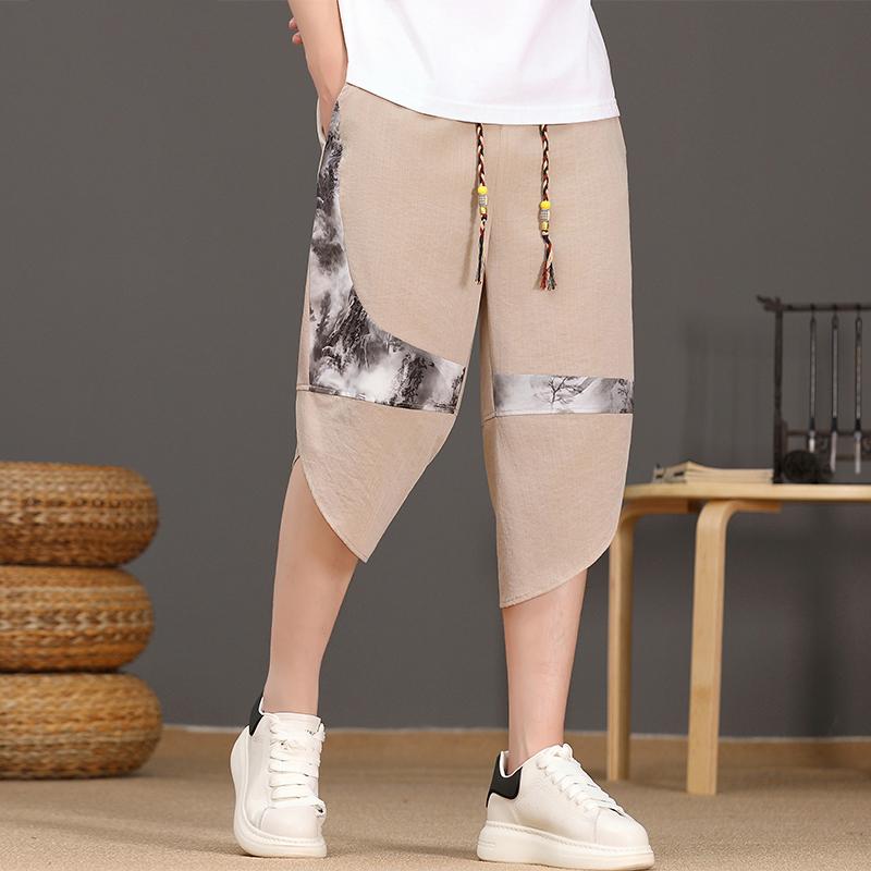 クロップドパンツ メンズ 七分丈 接触冷感 吸湿速乾 ゆったり ルーズフィット カジュアル 切り替え モダンチャイニーズ風 ストレート 普段使い ポリエステル 春夏 ボトムス
