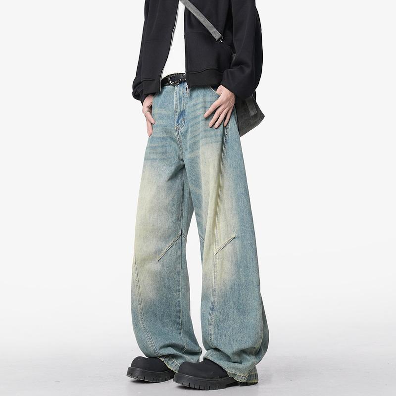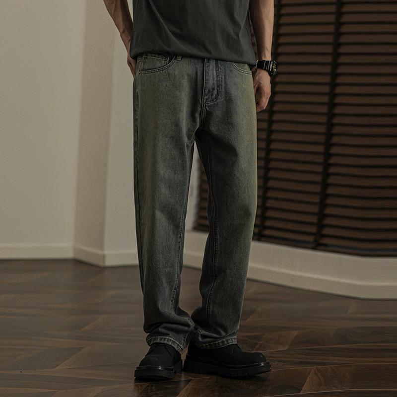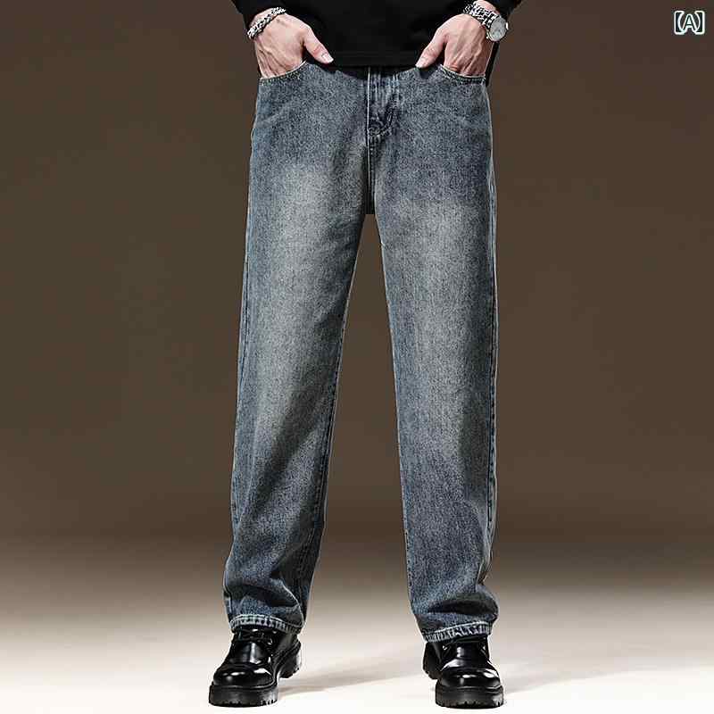 メンズ ファッション 服 用 オシャレ シンプル 大人 かっこいい 大きいサイズ ストリート 紳士服 アメリカン ウォッシュド クリーン フィット ストレート ジーンズ ワイドレッグ パンツ