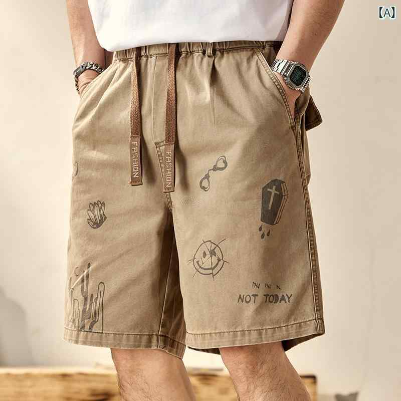 メンズ 男性用 ファッション オシャレ シンプル 大人 かっこいい ストリート ヒップホップ HipHop アメリカンン 夏 カジュアル ショート パンツ ルーズ ストレート グラフィティ プリント ハーフ パンツ