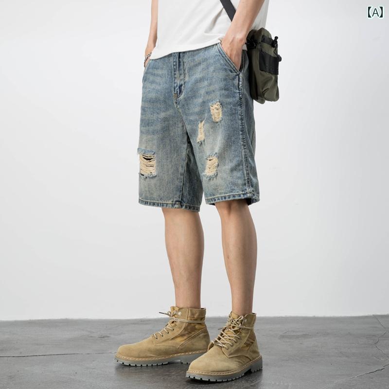 メンズ ファッション 春夏 秋冬 かっこいい オシャレ モテ 男性用 紳士服 服 韓国 シンプル 大人 破れた デニムショートパンツ メンズ アメリカン ストレート ストリート ショート パンツ 夏 薄手 レトロ カジュアル ショート パンツ