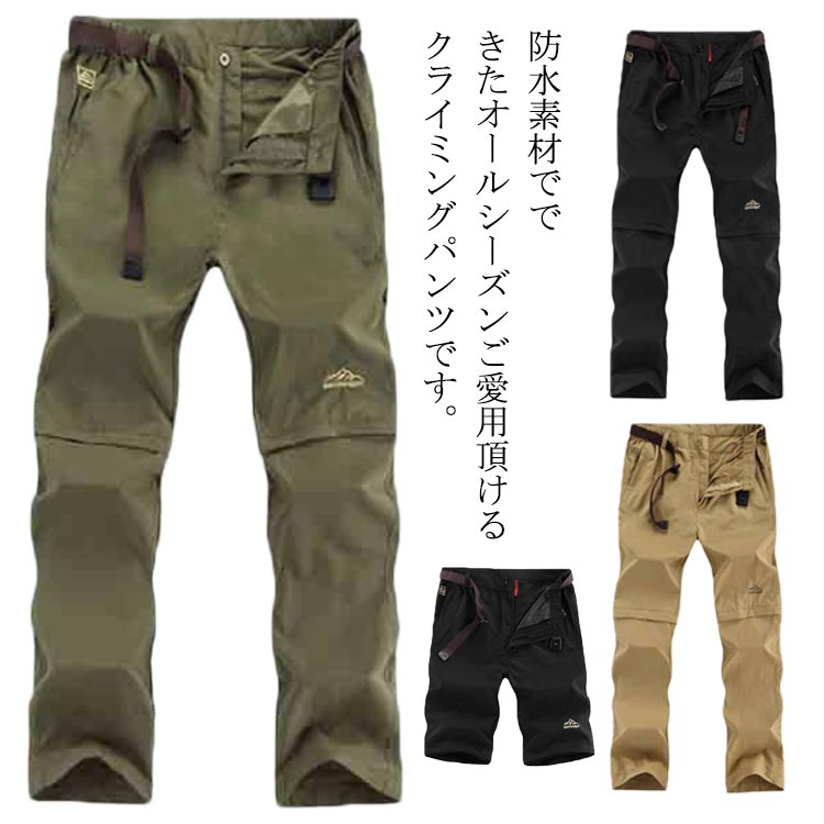 秋 ゆったり おしゃれ キャンプ 通気性良い 防水 速乾 ストレートパンツ クライミングパンツ ショートパンツに変身!2way メンズ