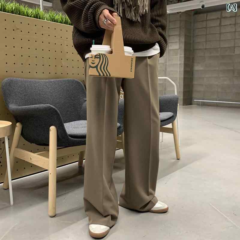 ズボン メンズ カジュアル おしゃれ パンツ 秋 ドレープ ストレート 韓国 トレンディ ワイドレッグ フロア レングス
