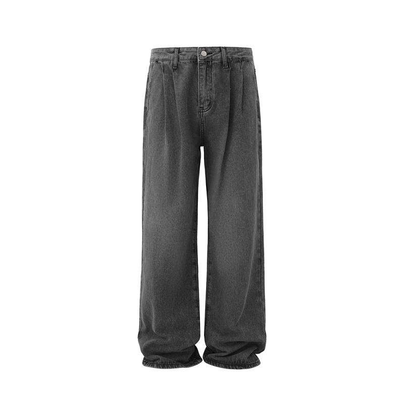デニムパンツ メンズ 韓国ファッション トレンド おしゃれ ゆったり ストレート ロング丈 ウォッシュ加工 微ストレッチ 綿混 カジュアル 普段使い 春 グレー