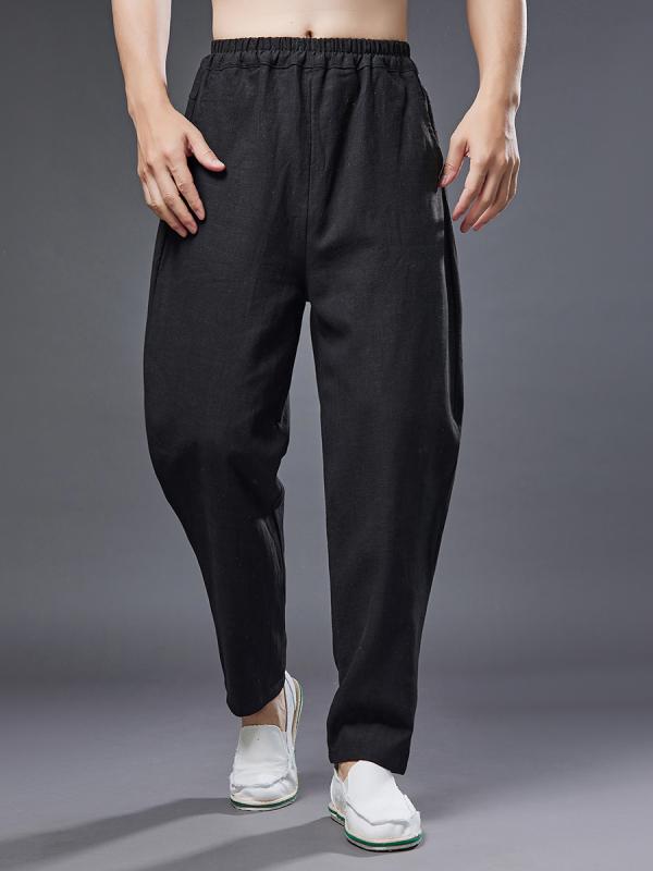 メンズカジュアル パンツ チャイナ風 無地 ミドルウエスト パンツ ウエスト メンズパンツ レトロ リネン パンツ ウエストゴム