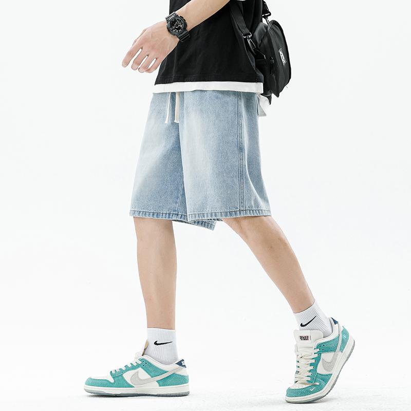 ハーフパンツ メンズ デニム 夏 ボトムス 半ズボン 短パン 五分丈 ウエストゴム 大きいサイズ ゆったり 吸汗 通気性 柔らかい 薄手 シンプル ストリート カジュアル スタイリッシュ 青 グレー 黒