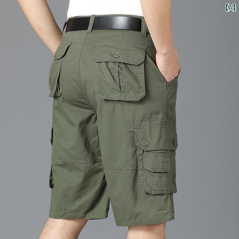 カーゴ ハーフパンツ メンズ 夏 ボトムス ストレート 五分丈 七分 クロップド ポケット 速乾 通気性 涼しい 柔らかい 色褪せにくい 動きやすい アウトドア 旅行 カジュアル 無地 カモフラ 大きいサイズ 緑 カーキ グレー