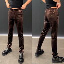 カジュアルパンツ メンズ 男性用 ストレート 金糸ベロア調 ビジネス ズボン ボトムス 無地 中厚手 ストレッチ性 ブラック コーヒー色