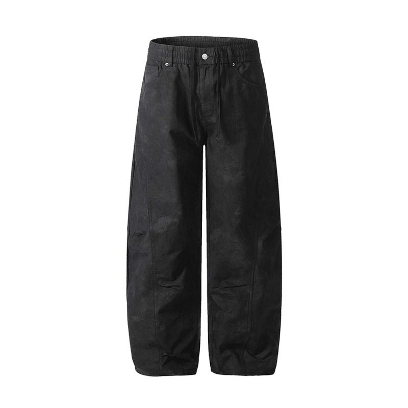 デニム パンツ メンズ 男性用 秋冬 コットン レトロ ウォッシュ加工 ユーズド加工 ゆったり ストレート ワイド 着痩せ フルレングス ロング丈 普段使い カジュアル トレンド