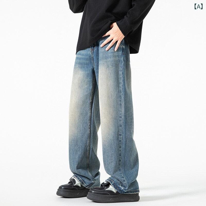 メンズ ファッション 服 男性用 オシャレ シンプル 大人 かっこいい ストリート 秋 冬コーデ レッグ ジーンズ レトロ スクラッチウォッシュ カジュアル パンツ