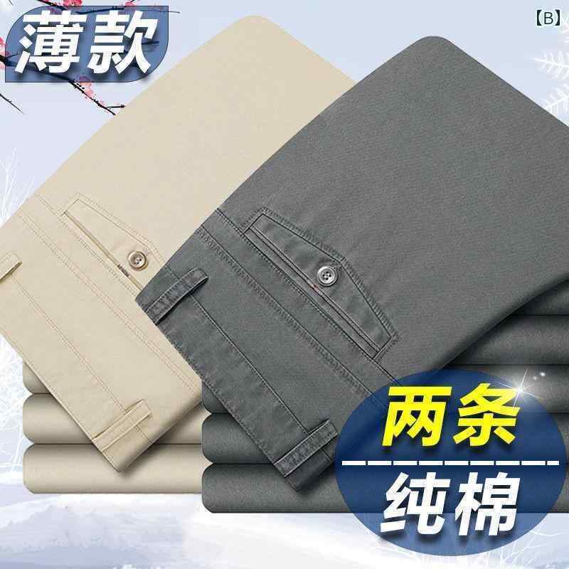 メンズ ズボン 夏用 春夏 2 パック 綿 ゆったり カジュアル パンツ ハイウエスト ディープ クロッチ アンチリンクル スーツ 厚手 ダッド