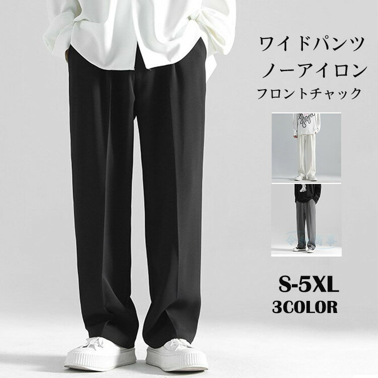 ワイドパンツ メンズ スラックス ノーアイロン テーパードパンツ フロントチャック サルエルパンツ ロングパンツ ビッグシルエット 無地 薄手 春 夏 秋 ビジネス カジュアル ゆったり イージーパンツ