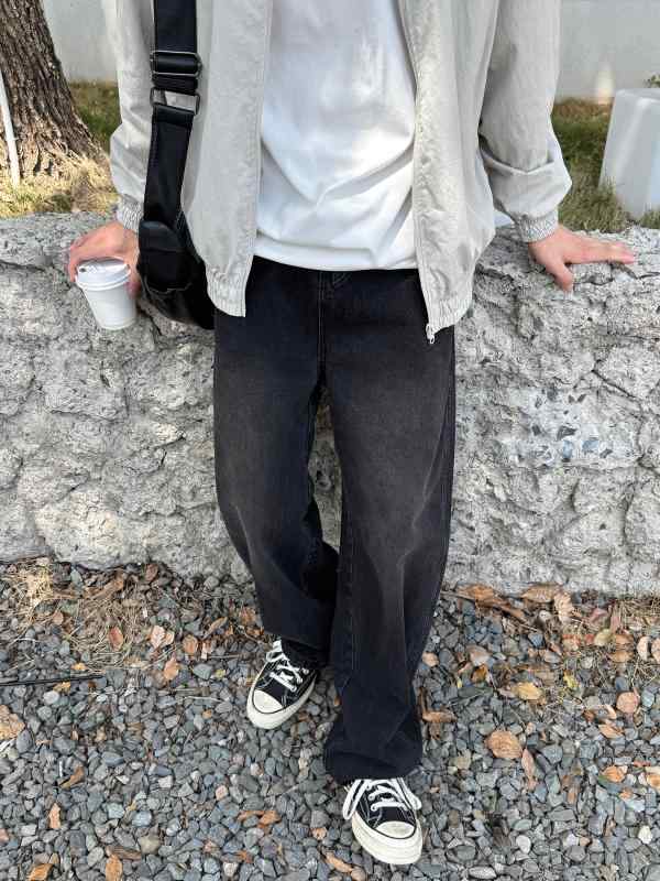 メンズ ファッション 春夏 秋冬 かっこいい オシャレ モテ 男性用 紳士服 服 韓国 シンプル 大人 ブラック レトロ ウォッシュ 加工 製 ストレート ドレープ ジーンズ カジュアル ロング パンツ