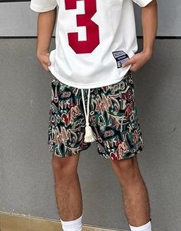 ハーフパンツ エスニック メンズ 夏 ボトムス ジャガード 刺繍 五分丈 大きいサイズ ゆったり カラフル リゾート レジャー 個性的 カジュアル おしゃれ 英字