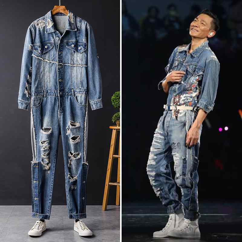 オーバーオール メンズ 男性用 デニム 作業着 ウォッシュ加工 ワークパンツ 長袖 ブルゾン カットオフ 切りっぱなし クラッシュ ダメージ 中厚手 春秋