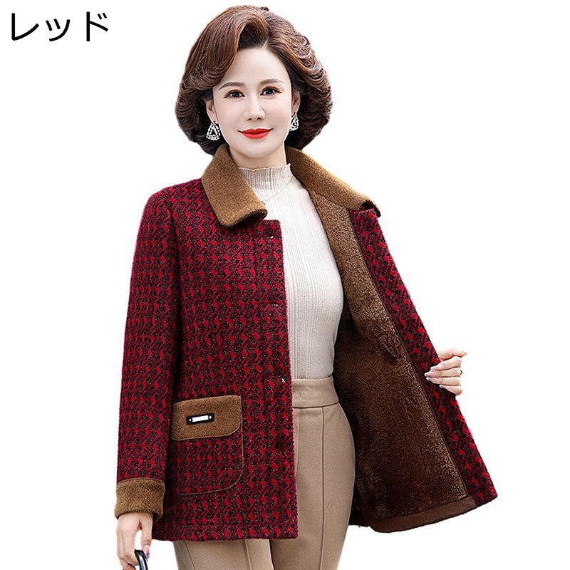 シニアレディース チェスターコート ラシャコート ショートコート 裏起毛 裏ボア 高齢者 お母さん カジュアルアウター ジャケット 秋冬服 日系 大きいサイズ 年寄り 厚手 中高年 レッド ネイビー