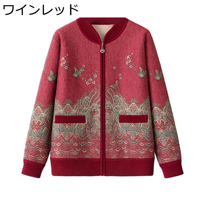 セーター ニットカーディガン レディース 長袖 ジャケット リブニット 前開き 暖かい 大きいサイズ 花柄 プリント 裏起毛 シニア 柔らかい 婦人服 秋冬服 高齢者対応 看護 日常 敬老の日