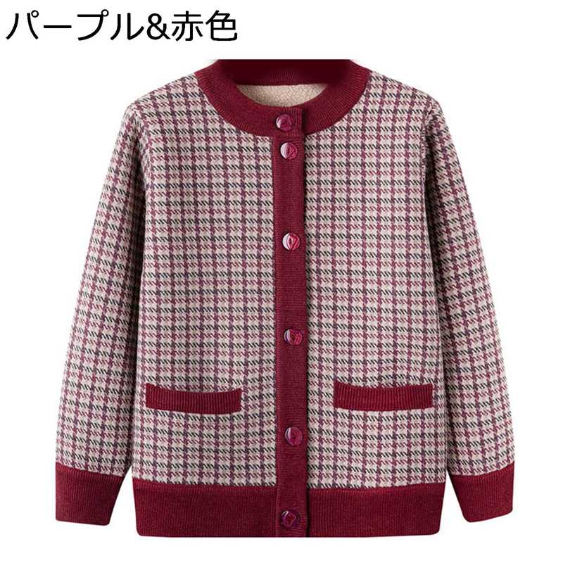 カーディガン ニットセーター 女性 チェック 厚手ジャケット 防風防寒 婦人服 前開き シニア 年寄り ボタンダウン 中年・高齢者 リブニット 春秋冬着 レディース 暖かい おしゃれ