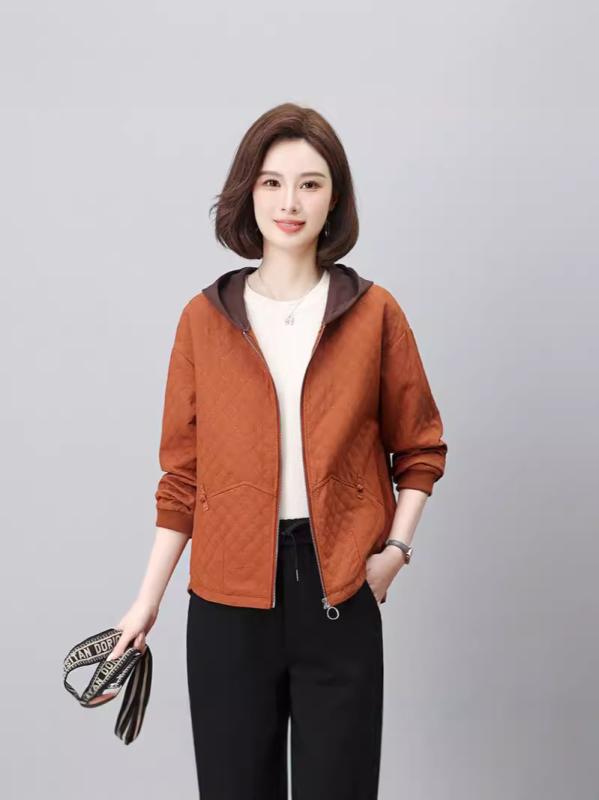 ジャケット レディース ミセス シニア フード付き ショート丈 アウター 長袖 エンボス加工 ポリエステル ジップアップ カジュアル 上品 ママ服 春秋 ゆったり 韓国ファッション