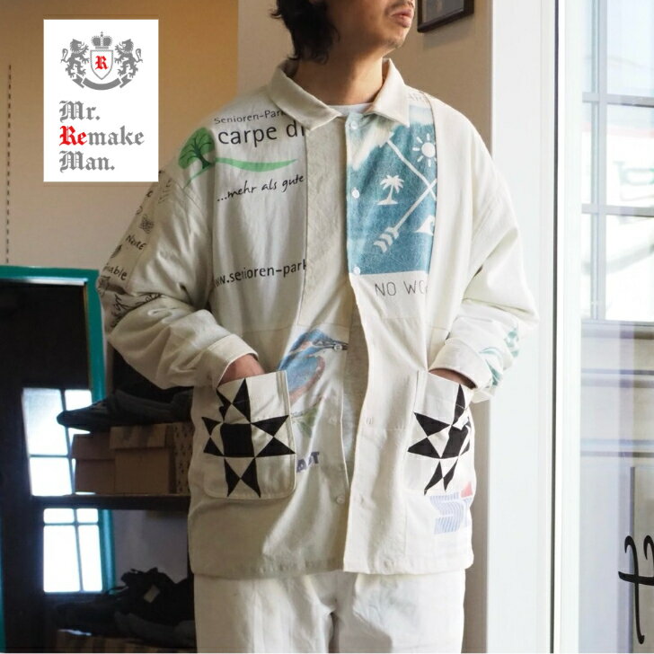 【古着のトートバッグを解体し再構築したシャツジャケット】MR.REMAKEMAN(ミスターリメイクマン)/USEDトートバックシャツジャケット/サイズ3-2