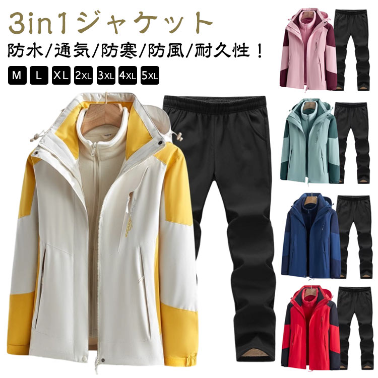 マウンテンパーカー 上下 メンズ レディース 裏起毛 防寒着 上下セット ウインドブレーカー セット 3in1ジャケット 裏ボアパンツ アウトドアジャケット セットアップ 登山ウェア 登山服 撥水 釣り ウェア ゴルフ バイク トレッキング 自転車 作業用