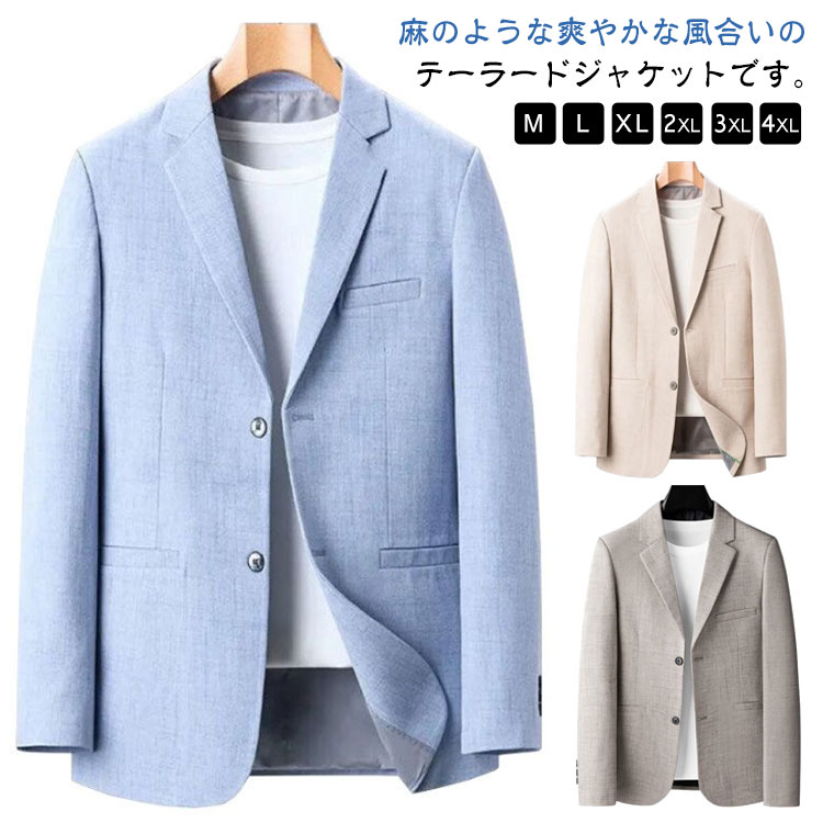 テーラードジャケット メンズ 夏 長袖 ブレザー リネンジャケット サマージャケット 麻100% ビジネス フォーマル 40代 50代 60代 サマースーツ スーツジャケット カジュアル 紳士服 無地 ゴルフ 仕事 オフィス 夏服 秋服 春物 父の日 プレゼント M-4XL