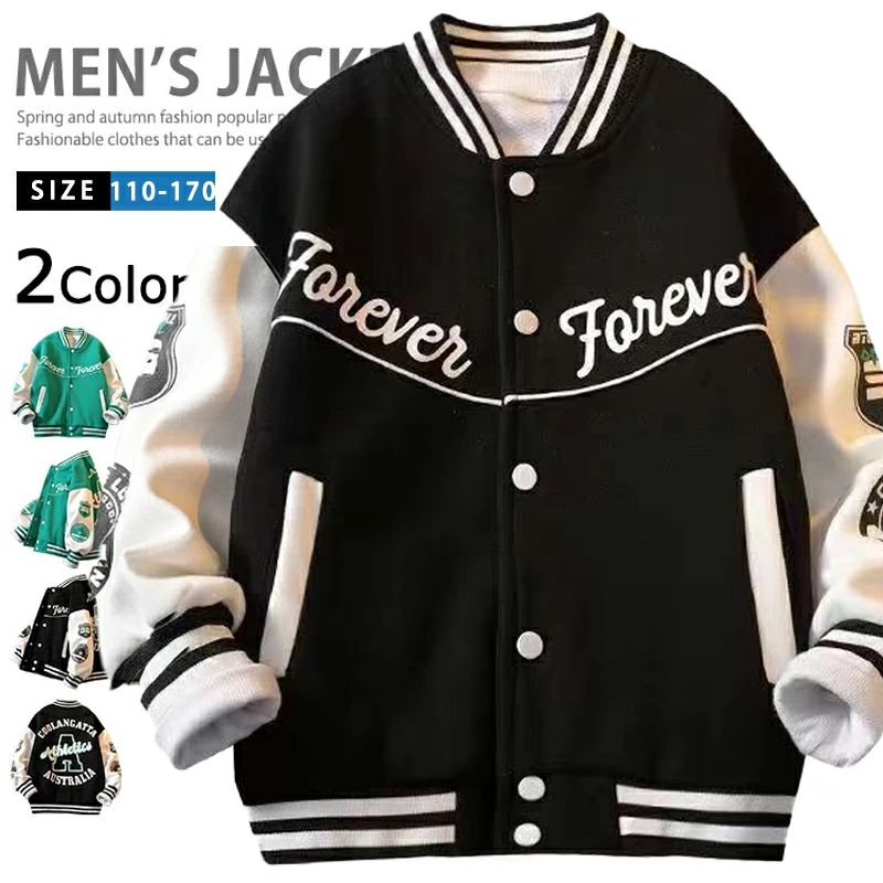 スタジャン 男の子 女の子 ジャケット ジャンパー アウター スタジアムジャンパー 薄手 裏起毛 野球服 子供服 ジュニア カジュアルコーデ スウェット あったかい 春 秋 冬 羽織 長袖 上着 通園 通学 女児 110cm 120cm 130cm 140cm 150cm 160cm 170cm