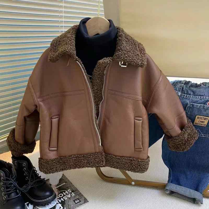子供服 ジャケット 男女兼用 PUレザー アウター ボア 羊羔毛 裏ボア 厚手 秋冬 防寒 あったか 普段使い かわいい 黒 ブラック コーヒー色 90cm 100cm 110cm 120cm 130cm 140cm 150cm 160cm