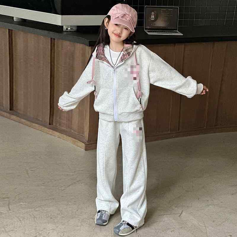 キッズ 女の子 ジャージ 上下セット 長袖 パーカー ロングパンツ 2点セット スポーツ ウェア グレー 格子柄 120cm 130cm 140cm 150cm 160cm 170cm