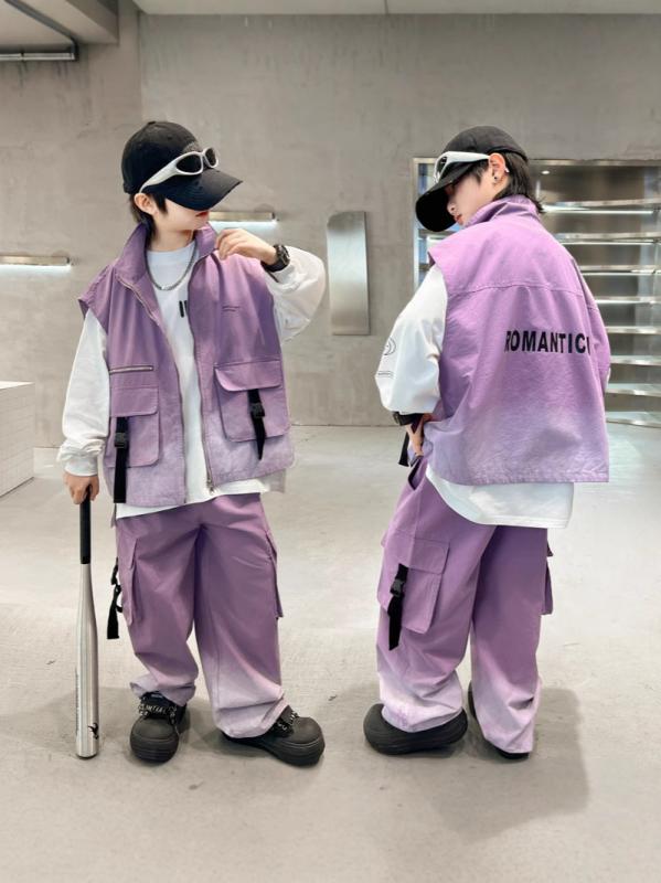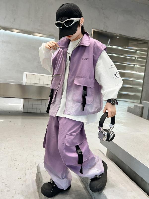 子供服 セットアップ 男の子 秋物 パンツ 上下セット ベスト付き 3点セット 綿100% 長袖 長ズボン 普段着 潮 カッコいい ブラック パープル 120cm 130cm 140cm 150cm 160cm 170cm