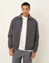 【送料無料】 エイソス メンズ ジャケット・ブルゾン アウター ASOS DESIGN boxy oversized zip up harrington jacket in charcoal Asphalt