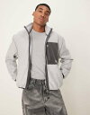 【送料無料】 エイソス メンズ ジャケット・ブルゾン アウター ASOS DESIGN oversized boxy zip through jacket with contrast pocket in gray fleece Gray Heather