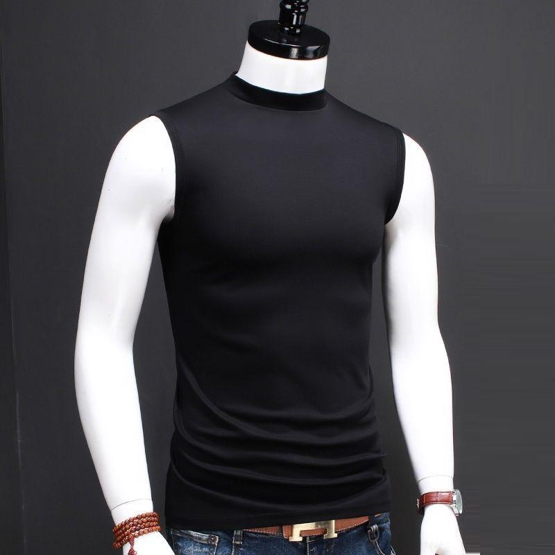 タンクトップ メンズ 男性用 モックネック クルーネック 薄手 無地 接触冷感 スリムフィット 細身 ポリエステル素材 ミルクシルク 快適 伸縮性 カジュアルスタイル 夏用 インナー カットソー