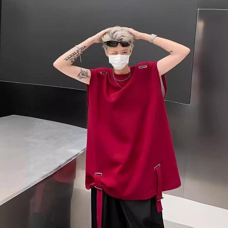 タンクトップ メンズ ゆったり ルーズフィット 綿混 ウォッシュ加工 ダメージ加工 クルーネック ヒップホップ ストリート レトロ ヴィンテージ 春夏