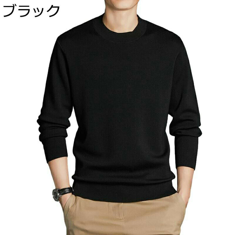 ニット セーター プルオーバー メンズ 秋冬 長袖 クルーネック 厚手 耐摩耗 ストレッチ 防風性 ソリッドカラー フィット インナー ニットセーター ファッション カジュアル 上着 通勤 普段着 お出掛け