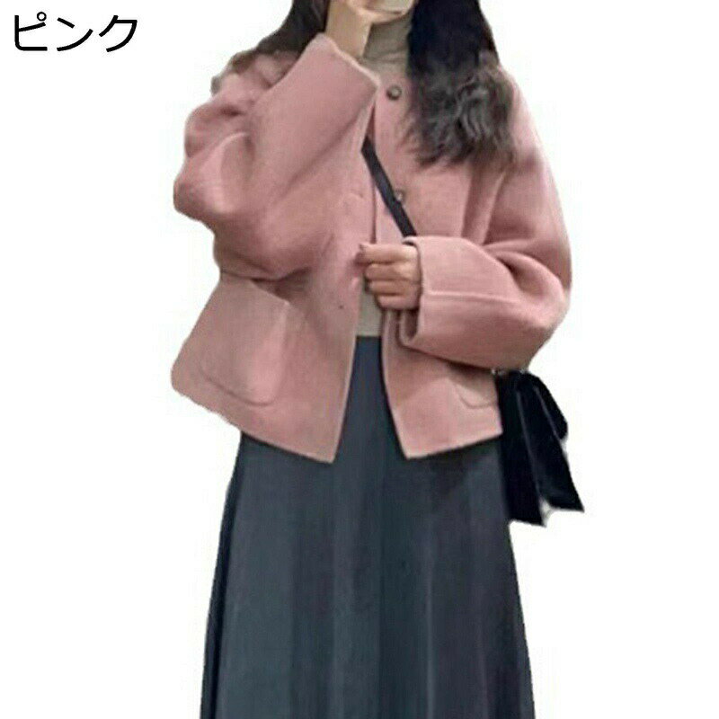 レディース クルーネック ショート丈 かわいい ラシャコート 柔らかい エレガント Aライン 秋冬用 スタイリッシュ カジュアル 無地 長袖 保温 暖かい 女性用 普段使い 通勤通学