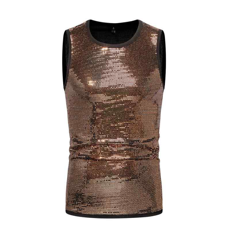 Tシャツ メンズ ノースリーブ クルーネック ラインストーン装飾 キラキラ 輝く スリムフィット カジュアル シンプル ポリエステル素材 春夏 ファッション トップス 普段着