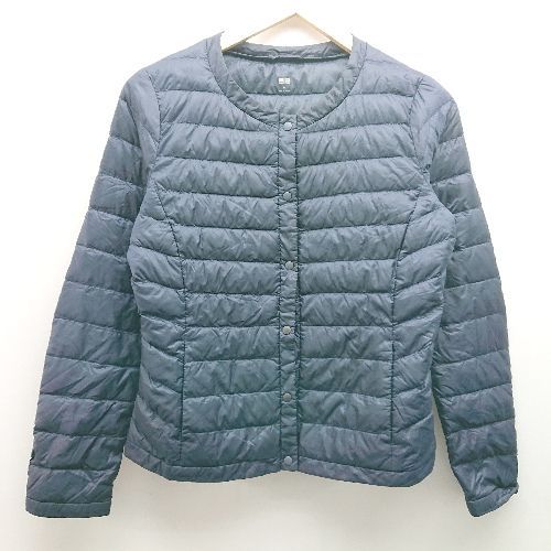 ◇ UNIQLO クルーネック さらさら生地 フロントボタン ストレッチ 長袖 ジャンパー サイズM ブルー レディース メンズ E 【中古】
