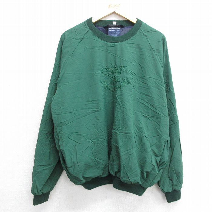 【中古】古着 長袖 ナイロンジャケット メンズ 90年代 90s SUNDERLAND ゴルフ 大きいサイズ 2L LL ビッグシルエット ゆったり ビッグサイズ オーバーサイズ ラグラン 刺繍 クルーネック 丸首 スコットランド製 緑 グリーン XLサイズ 中古 アウター ウインドブ 5OF