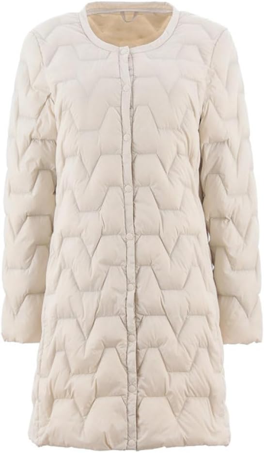 【20%OFFクーポン〜】ノーカラー ダウンジャケット レディース ウルトラライト ダウンコート インナーダウン ライトダウン ジャケット ポケット付き 無地 撥水 軽量 暖かい 防寒 薄い 秋 冬 春 クルーネックはVネック