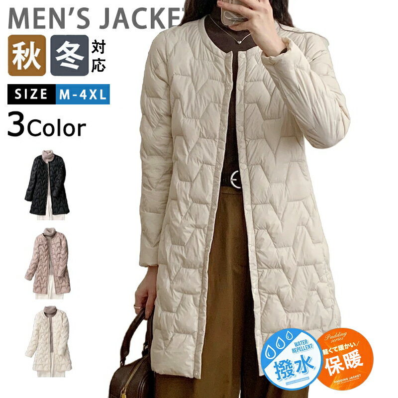 ロングダウンコート ダウンジャケット ロングコート レディース キルティングコート インナーダウン アウター クルーネック ビジネス オフィスカジュアル 冬 秋冬 防寒 上着 冬 大きいサイズ ジャンパー 暖かい きれいめ 体型カバー 収納ポーチ付き